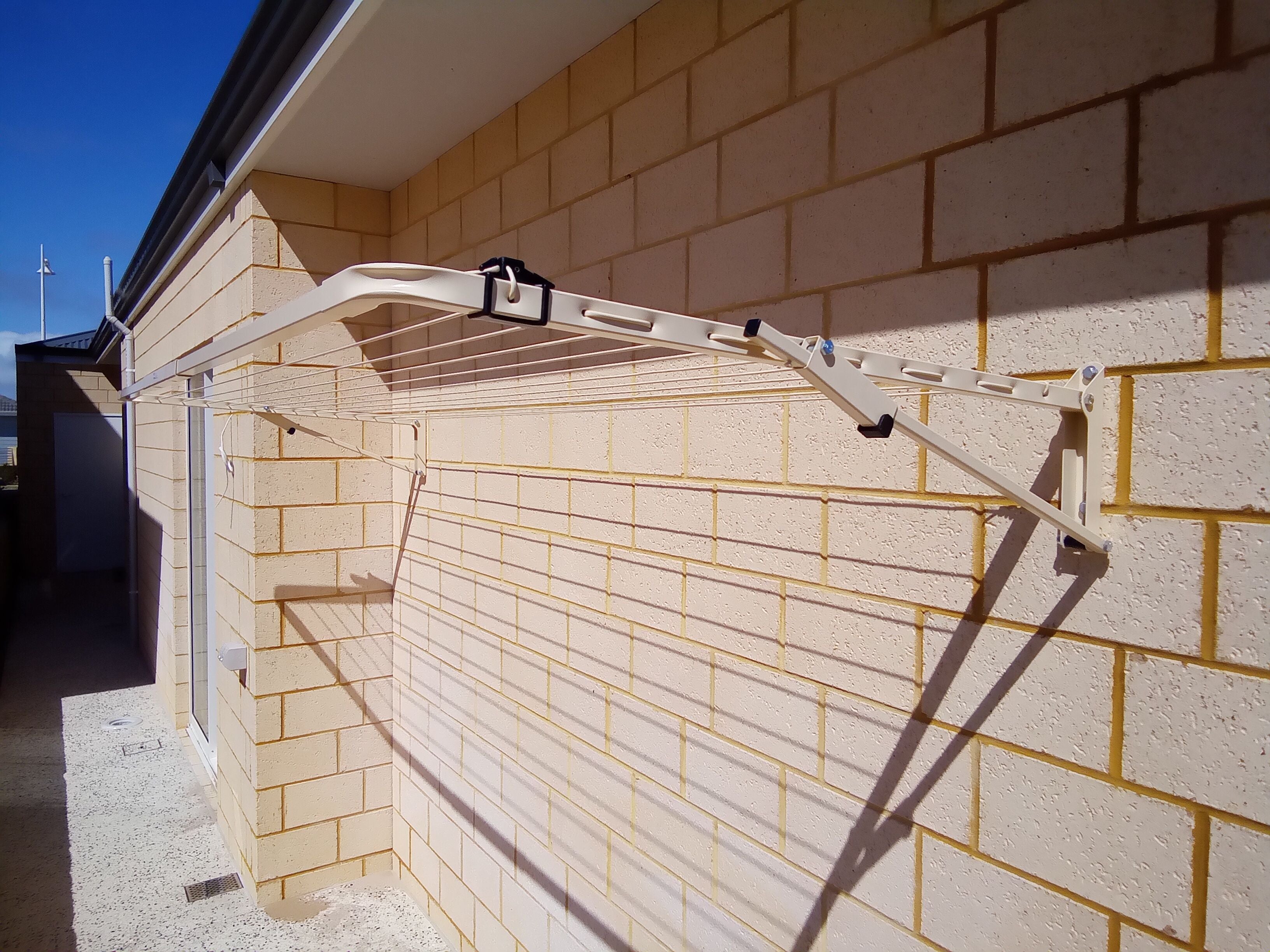 Install on a north- or west-facing wall to maximise natural drying time. Avoid shaded areas or spots frequently blocked by cars or bins.