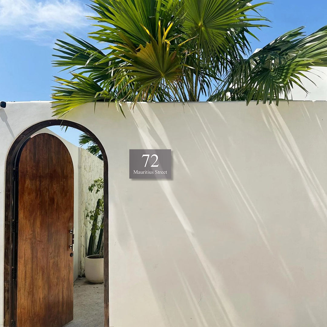 A sleek and durable house sign crafted from genuine COLORBOND® steel, finished in modern Basalt grey for a stylish, contemporary look. Measuring 390mm wide x 220mm high, this plate features your custom address text applied in industrial-grade vinyl. Popular text colours include White, Silver, and Gold, but you can choose from any colour to complement your home.