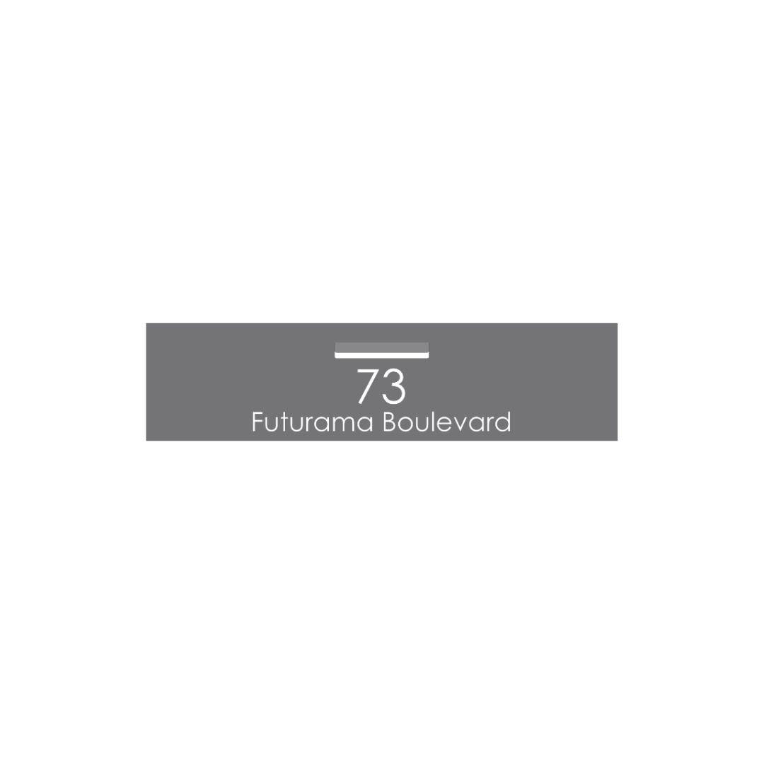 A clean, symmetrical Basalt faceplate (1200 × 300 mm) with central 240 mm mail slot and precision laser‑cut address text.