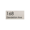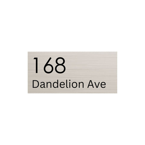 A sleek, modern house sign made from brushed silver aluminium composite. Measuring 300mm wide x 140mm high, this plate is customised with industrial‑grade vinyl text, set to a left‑aligned layout for a clean, contemporary presentation. The brushed silver finish delivers a refined, industrial look, while vinyl lettering gives crisp readability and full colour flexibility.