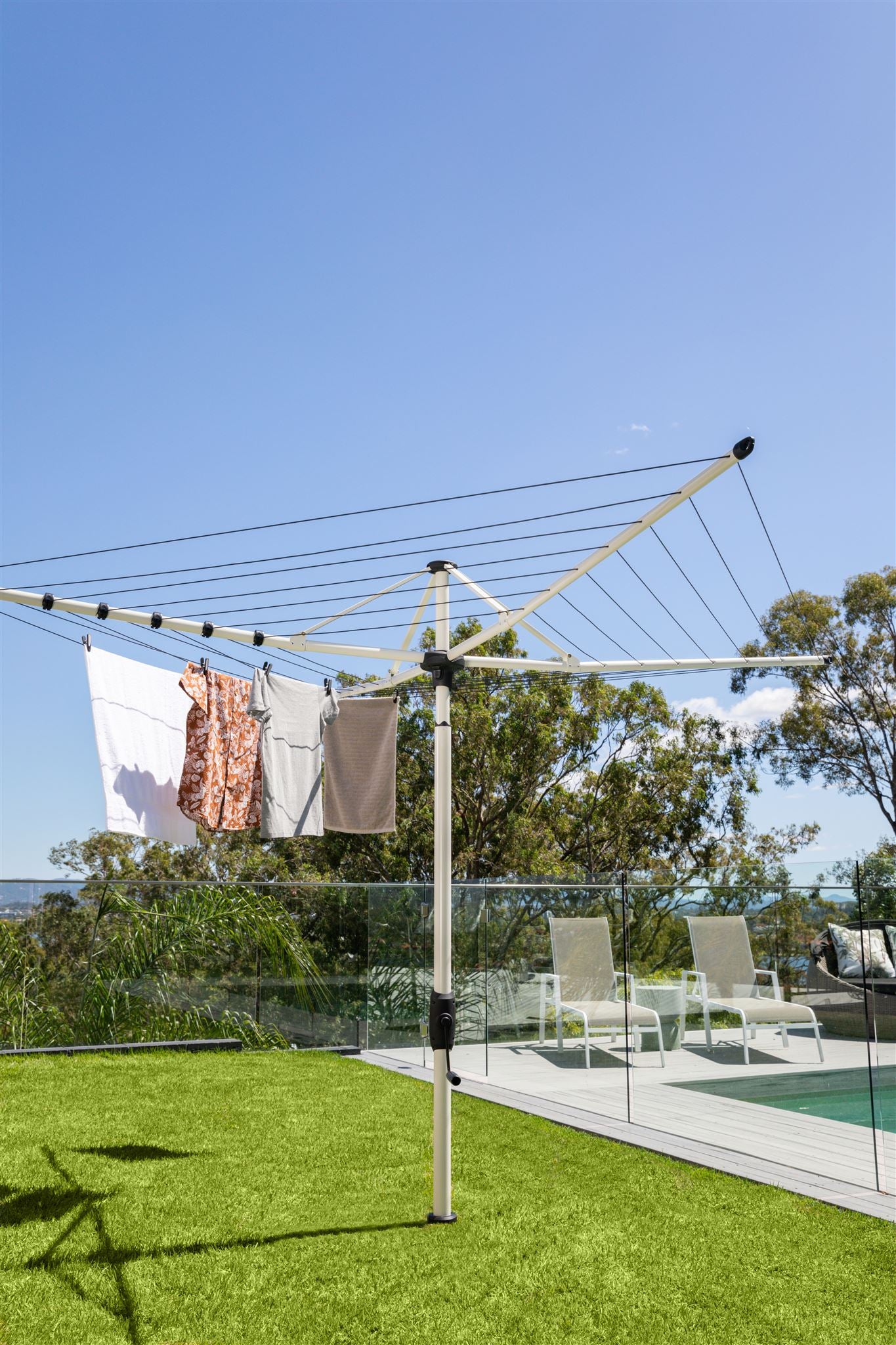 Tip: This clothesline is a favourite for multipurpose yards — fold it down or take it out completely for BBQs, sports, or pets, then pop it back in when it’s laundry time. Just remember to remove and clean the socket occasionally to avoid it seizing.