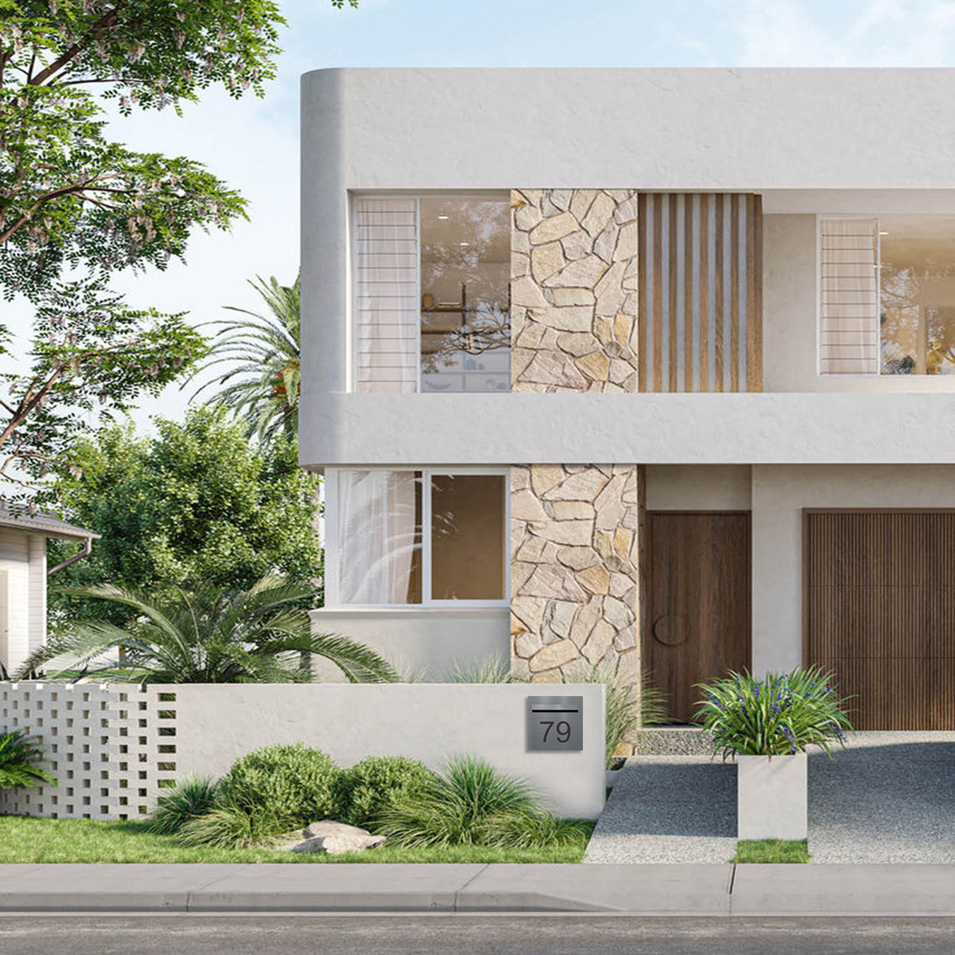 A premium square faceplate crafted from 316 marine grade brushed stainless steel (300mm x 300mm) with a 240mm mail slot. The satin brush grain gives a refined, low‑glare look that suits brick, render, stone and timber. Your address is laser‑etched into the surface for a permanent, high‑contrast mark that won’t peel or lift—excellent choice for coastal locations.