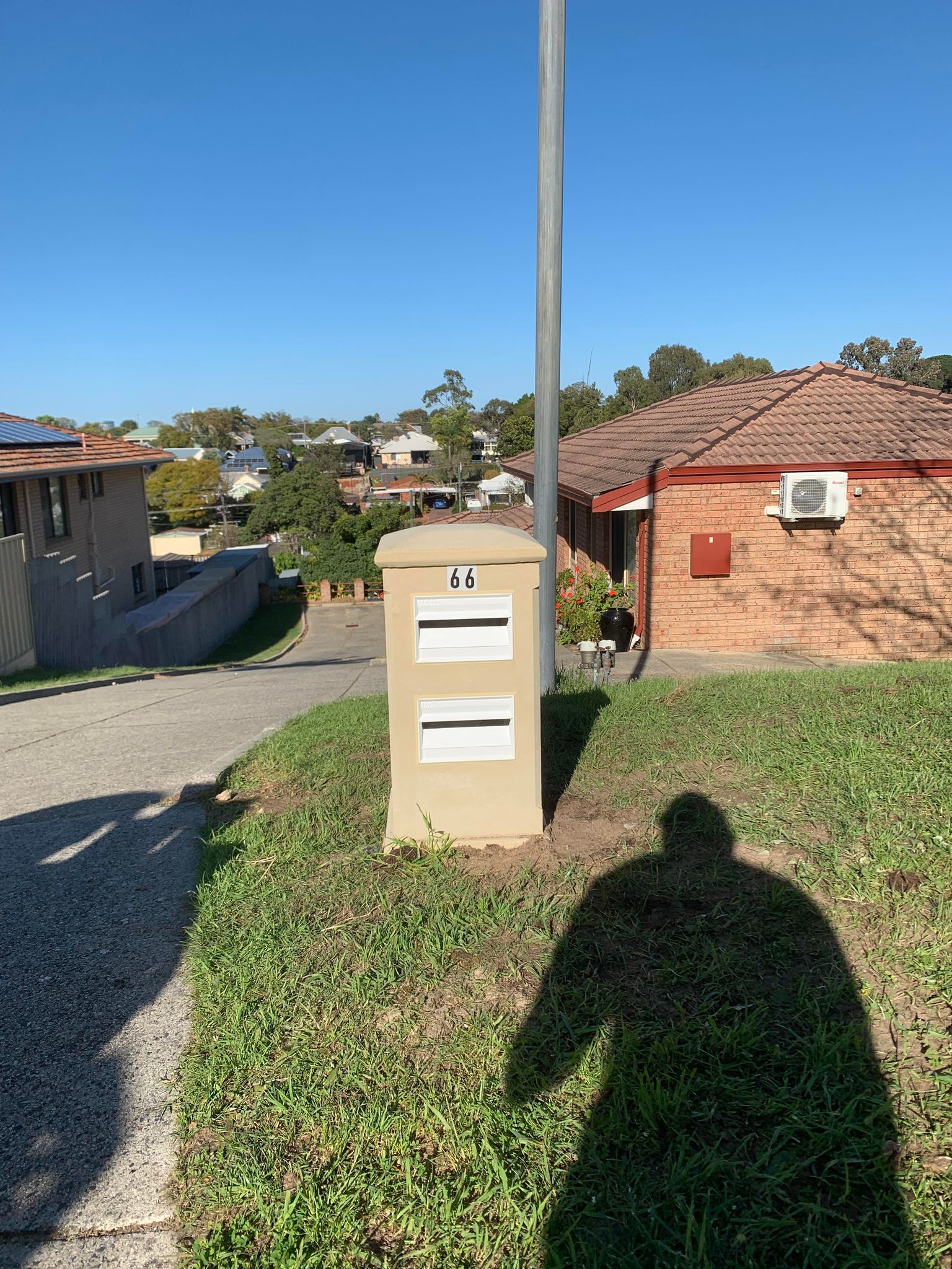 • Standard installation height is 900mm - 1200mm above ground level, as required by Australia Post. Note: Removal of an existing letterbox is a separate service (see below).