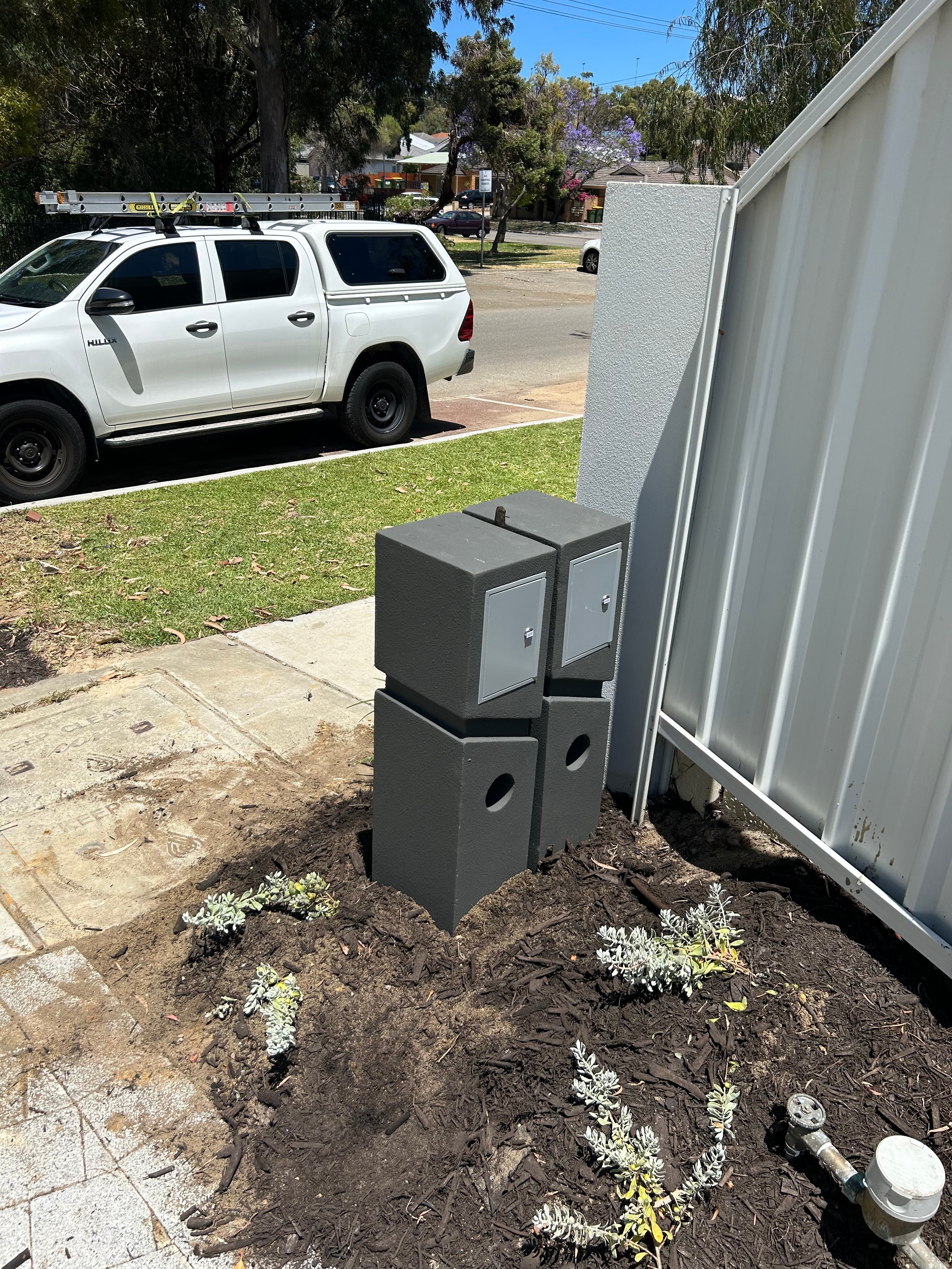 • Includes: supply and installation of a concrete base slab and securing the letterbox with industrial adhesive.