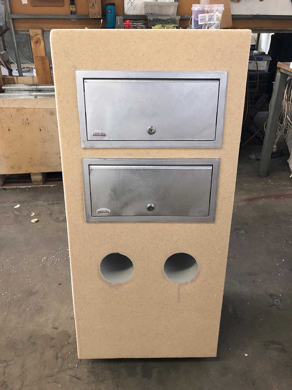 letterbox (approx. 120kg) onto the slab before securing with industrial adhesive.