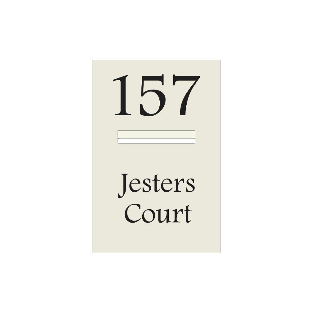 Tall portrait plate (400 × 600 mm) in Surfmist with laser‑cut address and 240 mm slot.