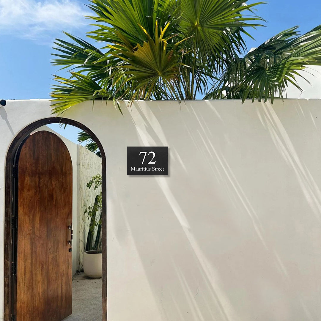 A sleek and durable house sign crafted from genuine COLORBOND® steel, finished in deep Monument grey for a bold, architectural look. Measuring 390mm wide x 220mm high, this plate features your custom address text applied in industrial-grade vinyl. Popular text colours include White, Silver, and Gold, but you can choose from any colour to create the perfect contrast.
