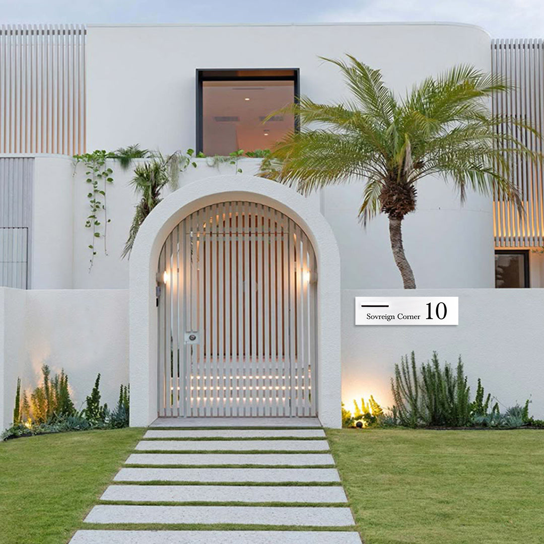 Surfmist with a Left‑hand 240 mm slot for practical service alignment and easy mail access. Laser‑cut address detail backed by your chosen colour.